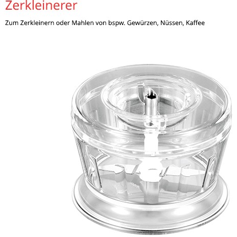 Der 5050 Zerkleinerer überzeugt durch seine robuste Edelstahlklinge, die mühelos auch harte Zutaten zerkleinert. Das kompakte Design ermöglicht eine einfache Handhabung und effizientes Arbeiten in der Küche.