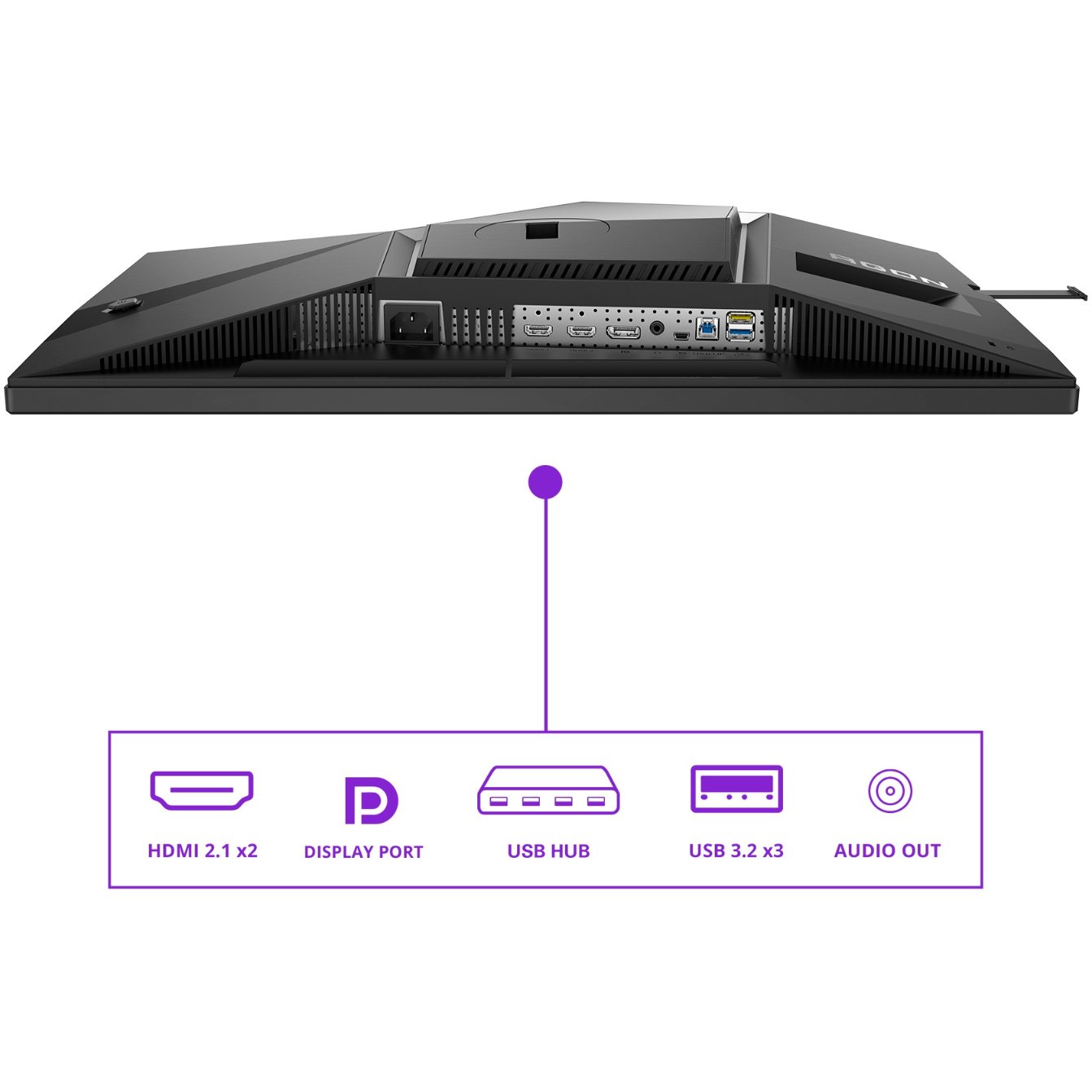 - Anschlüsse: 2x HDMI 2.1, 1x DisplayPort 1.4, USB-Hub, Kopfhörerausgang