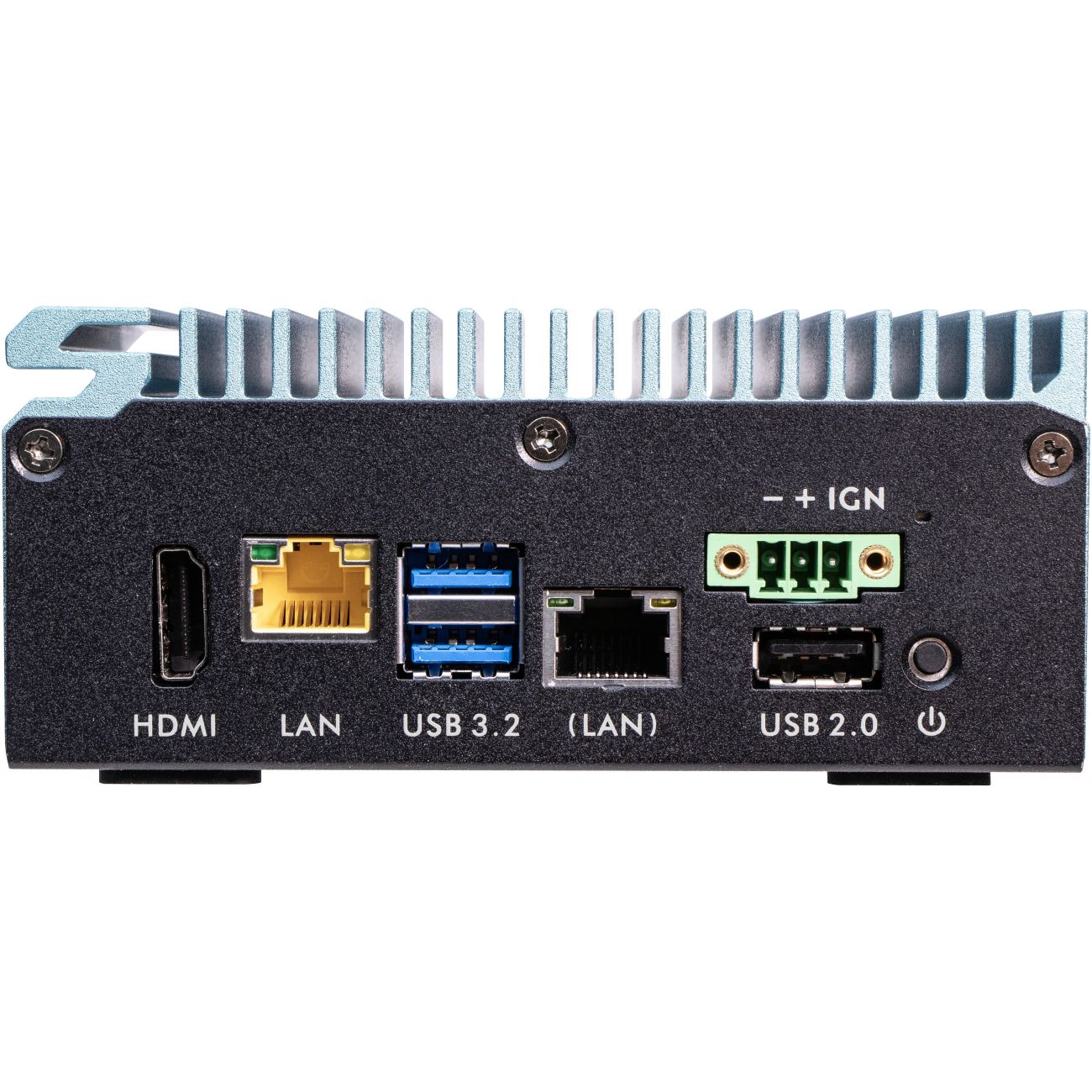 - Anschlüsse: 2x 2.5G LAN, 1x HDMI 2.0b, 2x USB 3.2, 1x USB 2.0, 1x COM, DIO