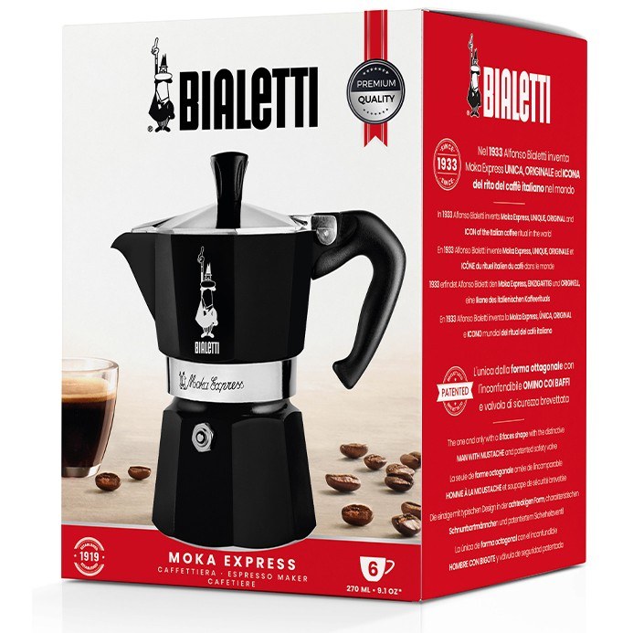 Bialetti Moka Express 6TZ nera: Italienischer Kaffeegenuss in Schwarz