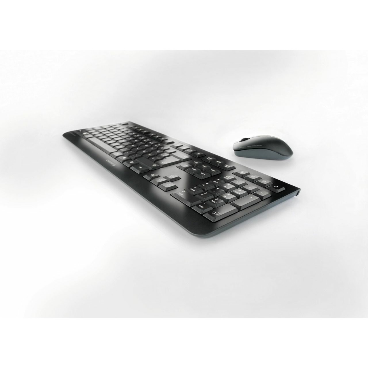 CHERRY DW 3000. Tastatur Formfaktor: Volle Größe (100%). Tastatur-Stil: Gerade. Übertragungstechnik: Kabellos, Geräteschnittstelle: RF Wireless, Tastaturaufbau: QWERTY, Tastatur - Tastenanzahl: 108, Empfohlene Nutzung: Heimbüro. Produktfarbe: Schwarz. Maus enthalten