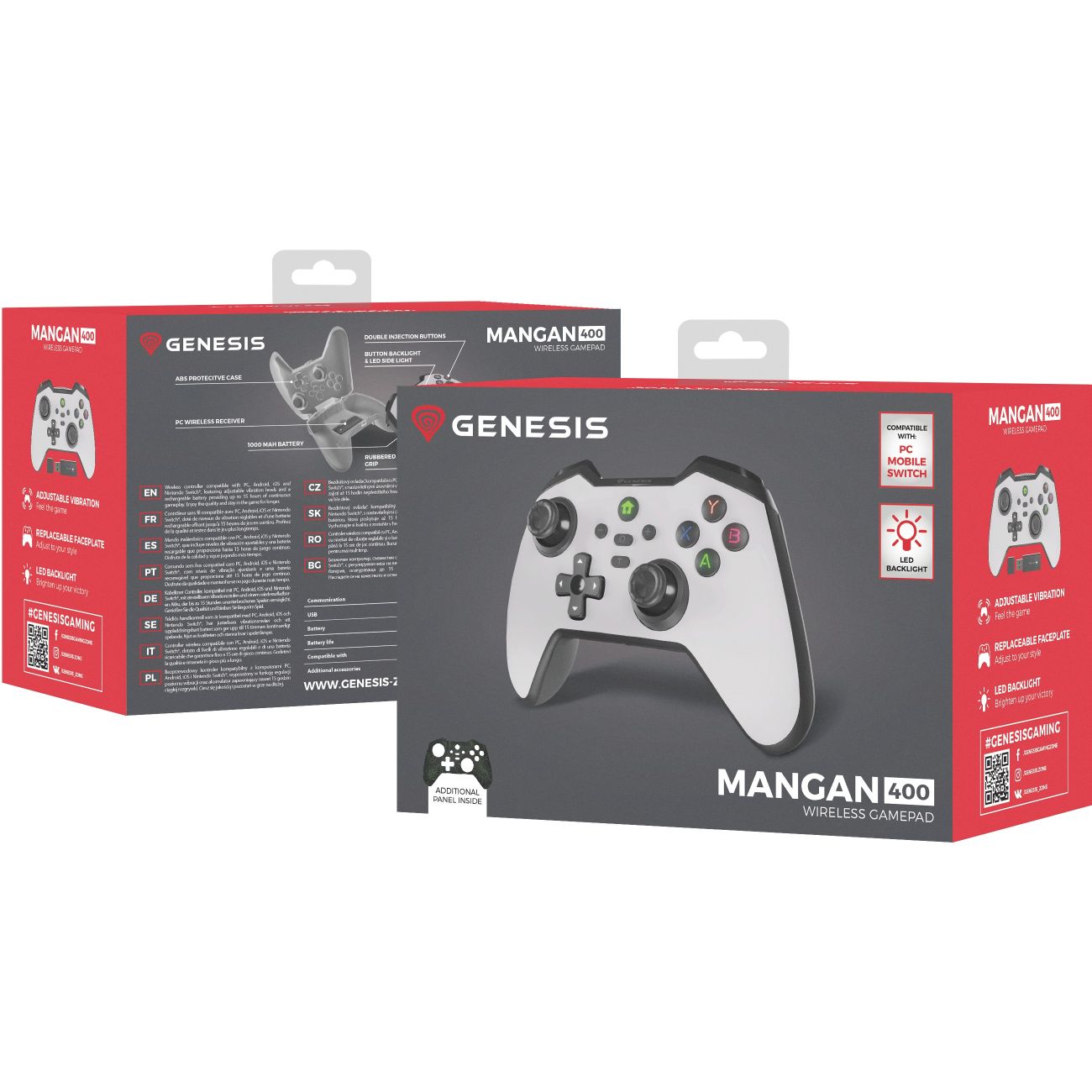GENESIS Mangan 400. Ger„tetyp: Gamepad, Gamingplattformen untersttzt: Android, MAC, Nintendo Switch, PC, iOS, Gaming-Control Funktionskn”pfe: D-Pad, Home button, Modus-Taste, Schaltfl„che Ausw„hlen, Schaltfl„che Start, Turbo-Taste. šbertragungstechnik: Kabellos, Ger„teschnittstelle: Bluetooth, USB-Stecker: USB Typ-C. Produktfarbe: Weiá. Energiequelle: Akku, Akku-/Batterietyp: Eingebaut, Akku-/Batterietechnologie: Lithium-Ion (Li-Ion). Untersttzt Windows-Betriebssysteme: Windows 10, Windows 11, Windows 7, Windows 8, Untersttzte mobile Betriebssysteme: Android