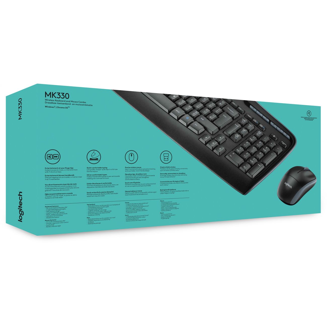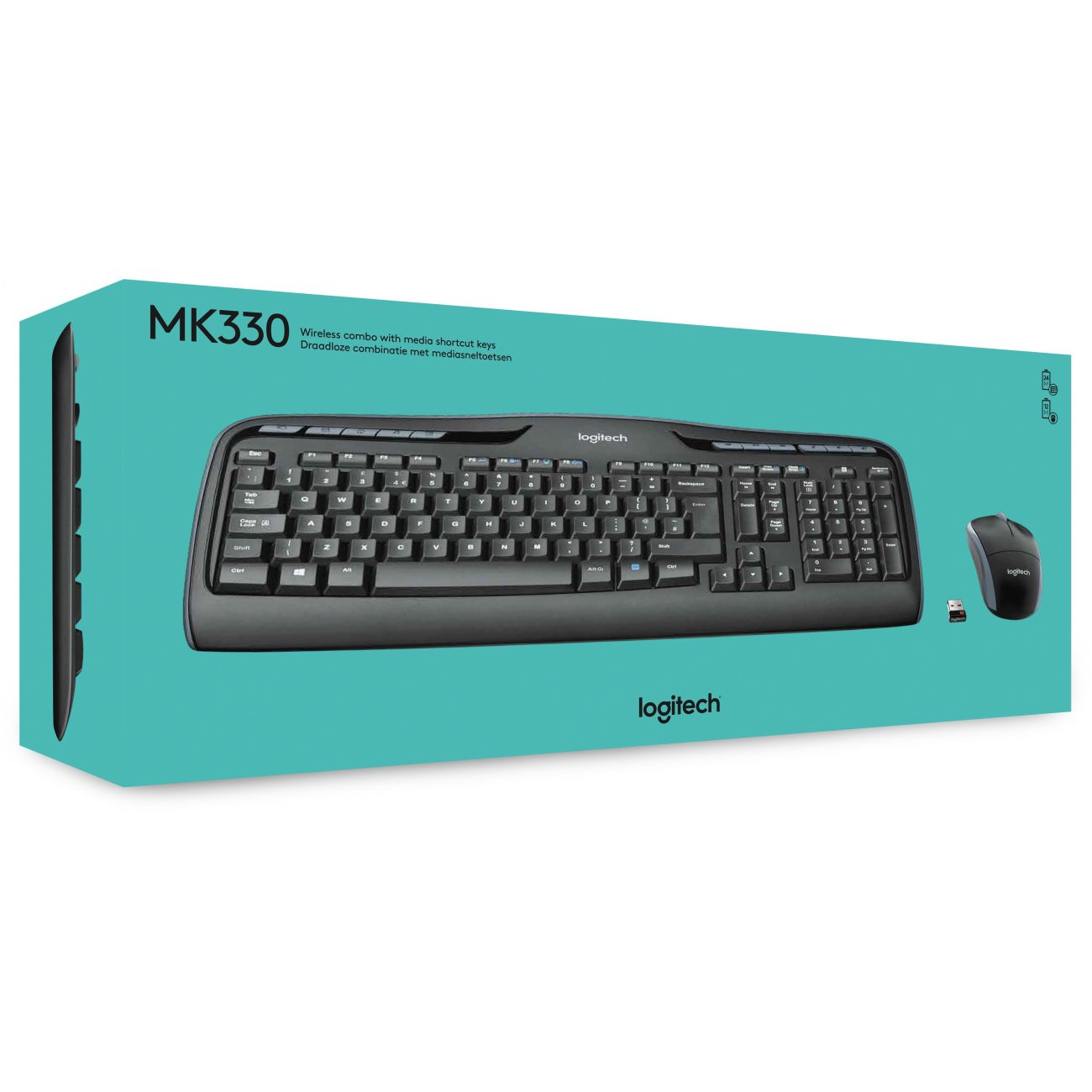 Logitech Wireless Combo MK330. Tastatur Formfaktor: Volle Gr”áe (100%). Tastatur-Stil: Gerade. šbertragungstechnik: Kabellos, Ger„teschnittstelle: USB, Tastaturaufbau: QWERTY, Empfohlene Nutzung: Bro. Produktfarbe: Schwarz. Maus enthalten