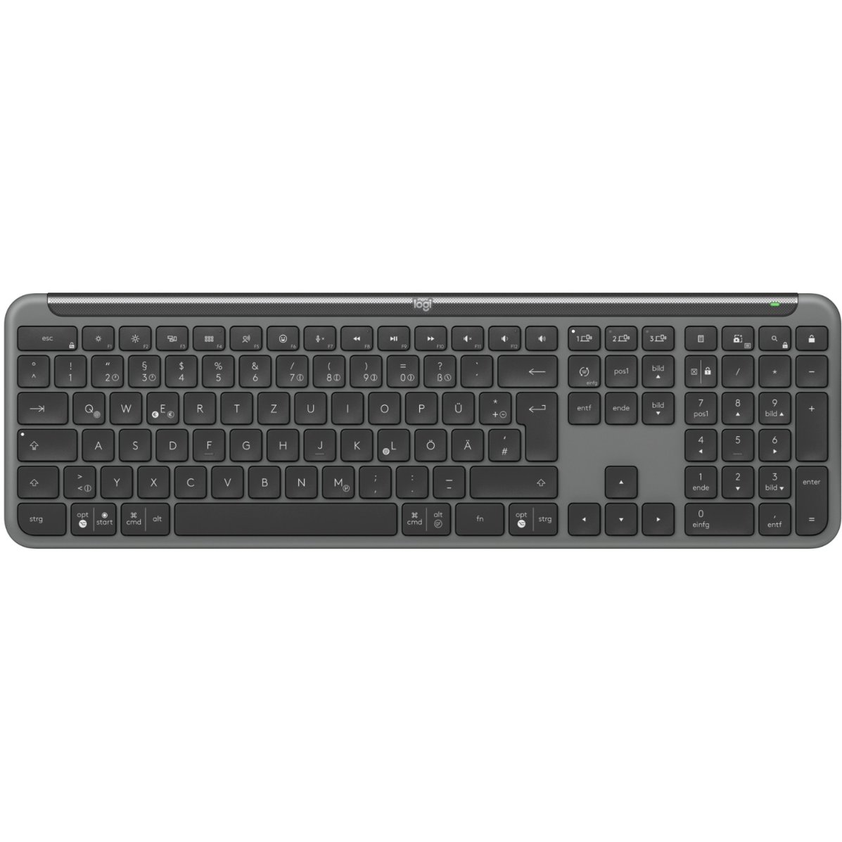 Logitech Signature Slim Combo MK950. Tastatur Formfaktor: Volle Größe (100%). Tastatur-Stil: Gerade. Übertragungstechnik: Kabellos, Geräteschnittstelle: RF Wireless + Bluetooth, Tastatur-Switch: Scherenschalter, Tastaturaufbau: QWERTZ, Empfohlene Nutzung: Büro. Produktfarbe: Graphit. Maus enthalten