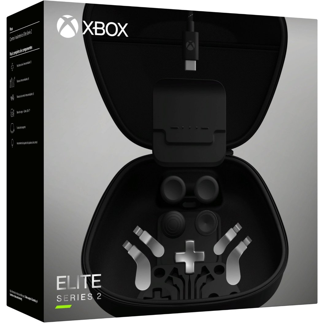 Microsoft Xbox Elite Wireless Controller Series 2 ? Complete Component Pack. Gamingplattformen untersttzt: PC, Xbox One, Produkttyp: Spiele-Controllerzusatz, Produktfarbe: Schwarz, Silber. Mitgelieferte Kabel: USB Typ-C, Analoge Daumensticks enthalten: Klassisch, Tall, Paddel enthalten: Medium, Mini. Verpackungsbreite: 190 mm, Verpackungstiefe: 190 mm, Verpackungsh”he: 77 mm