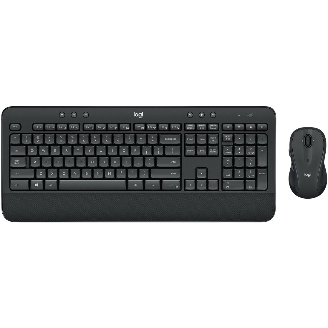 Logitech 920-008923. Tastatur Formfaktor: Volle Größe (100%). Tastatur-Stil: Gerade. Übertragungstechnik: Kabellos, Geräteschnittstelle: RF Wireless, Tastaturaufbau: QWERTY. Handgelenkauflage. Empfohlene Nutzung: Büro. Produktfarbe: Schwarz. Maus enthalten