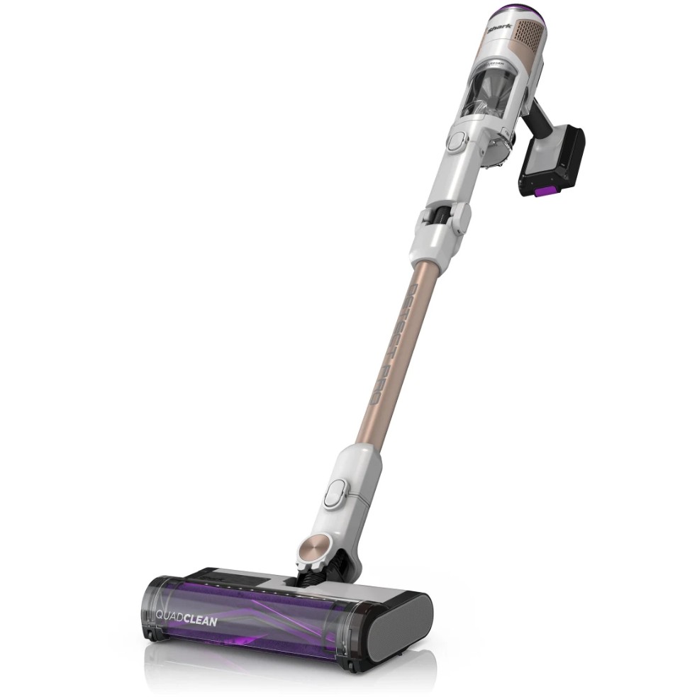 Shark IW3611DE. Produkttyp: Stabstaubsauger, Staubbehälter Typ: Beutellos, Produktfarbe: Messing, Weiß. Reinigungsart: Trocken, Vakuum-Luftfilterung: Allergie-Filter, Reinigen der Oberflächen: Harter Boden, Soft floor. Energiequelle: Akku, Maximale Eingangsleistung: 240 W, Akku-/Batteriespannung: 21,6 V. Verpackungsbreite: 357 mm, Verpackungstiefe: 308 mm, Verpackungshöhe: 780 mm. Breite: 264 mm, Tiefe: 353 mm, Höhe: 1092 mm