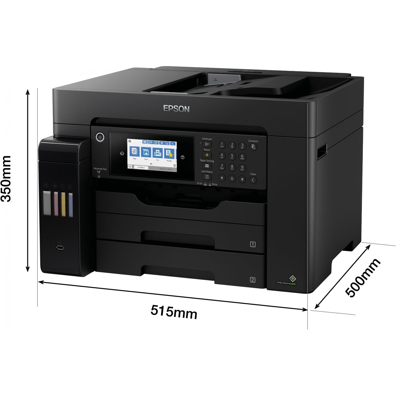Epson EcoTank ET-16650. Drucktechnologie: Tintenstrahl, Drucken: Farbdruck, Maximale Auflösung: 4800 x 1200 DPI, Druckgeschwindigkeit (Farbe, normale Qualität, A4/US Letter): 32 Seiten pro Minute. Kopieren: Farbkopieren. Scannen: Farbscan, Optische Scan-Auflösung: 1200 x 2400 DPI. Faxen: Farbfaxen. Maximale Papiergröße der ISO A-Serie: A3. WLAN. Direktdruck. Produktfarbe: Schwarz