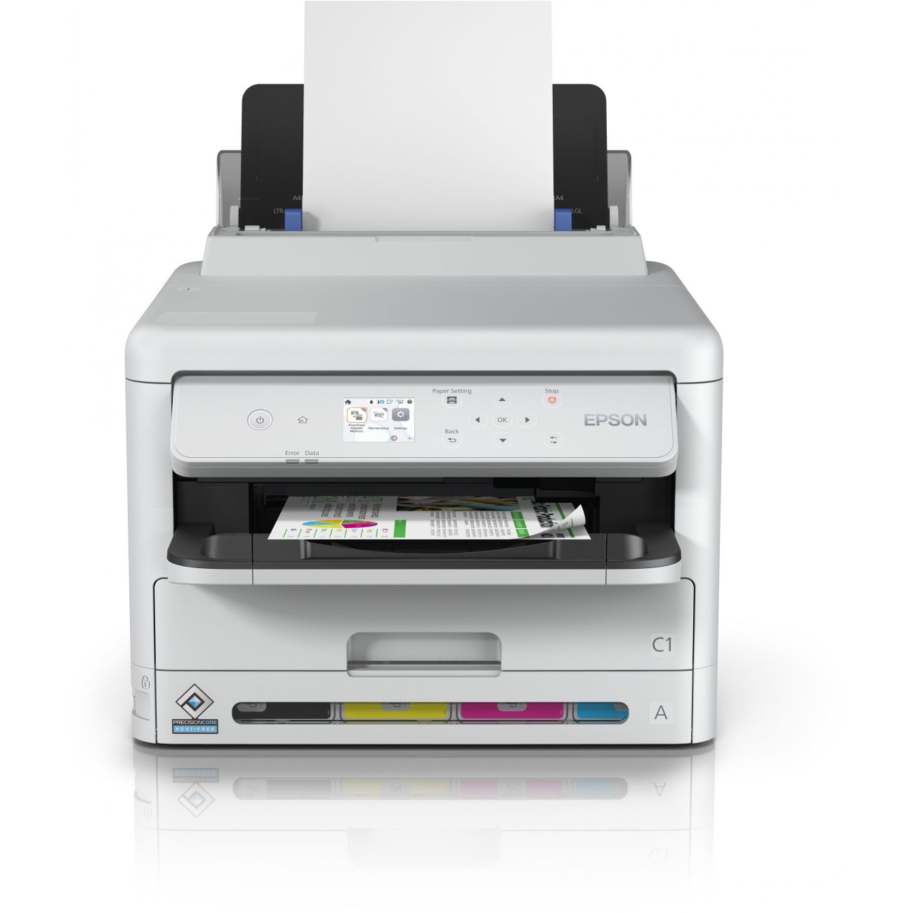 Epson WorkForce Pro WF-C5390DW. Farbe, Zahl der Druckpatronen: 4, Maximale monatliche Auslastung: 75000 Seiten pro Monat. Maximale Auflösung: 4800 x 1200 DPI. Maximale Papiergröße der ISO A-Serie: A4. Druckgeschwindigkeit (Schwarz, normale Qualität, A4/US Letter): 34 Seiten pro Minute. Doppelseitiger Druck. WLAN. Produktfarbe: Schwarz, Weiß