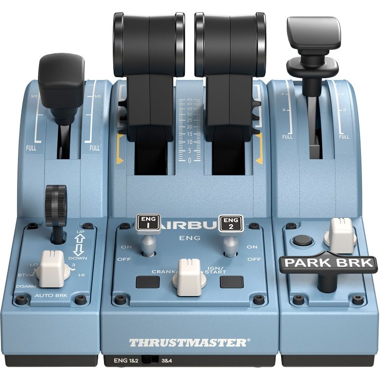 Thrustmaster TCA Quadrant Add-On Airbus Edition. Ger„tetyp: Flugsimulation, Gamingplattformen untersttzt: PC. Produktfarbe: Schwarz, Blau. Untersttzt Windows-Betriebssysteme: Windows 10, Windows 8. Breite: 45 mm, Tiefe: 225 mm, H”he: 145 mm. Verpackungsbreite: 140 mm, Verpackungstiefe: 290 mm, Verpackungsh”he: 200 mm